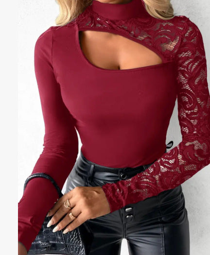 Package Includes: 1 * Women's Asymmetrical Cutout Lace Sleeve Top