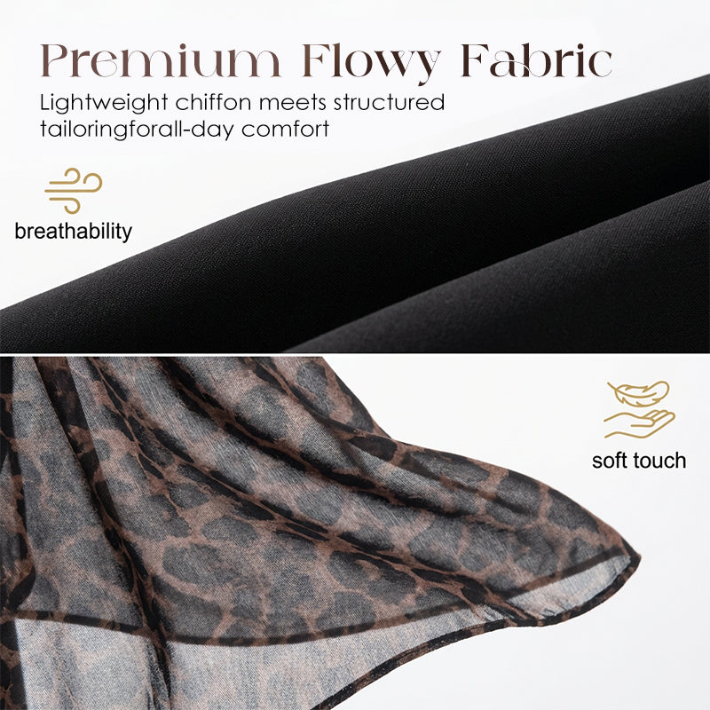 ASYMMETRICAL LEOPARD ACCENT - This unique design element adds a bold, fashionable touch. The flowing sheer fabric creates dynamic movement, ensuring you stand out with an eye-catching and sophisticated flair at any event or occasion.